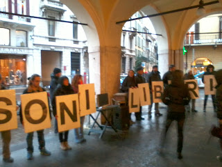 Ringraziamo la Questura e la Polizia Municipale di Brescia che ci hanno autorizzato a stare sotto i portici, permettendoci di allestire la nostra manifestazione all'asciutto e consentendoci così di non dover rinunciare all'utilizzo della strumentazione audio-video, visto che la pioggia non ci ha abbandonato neppure un istante!